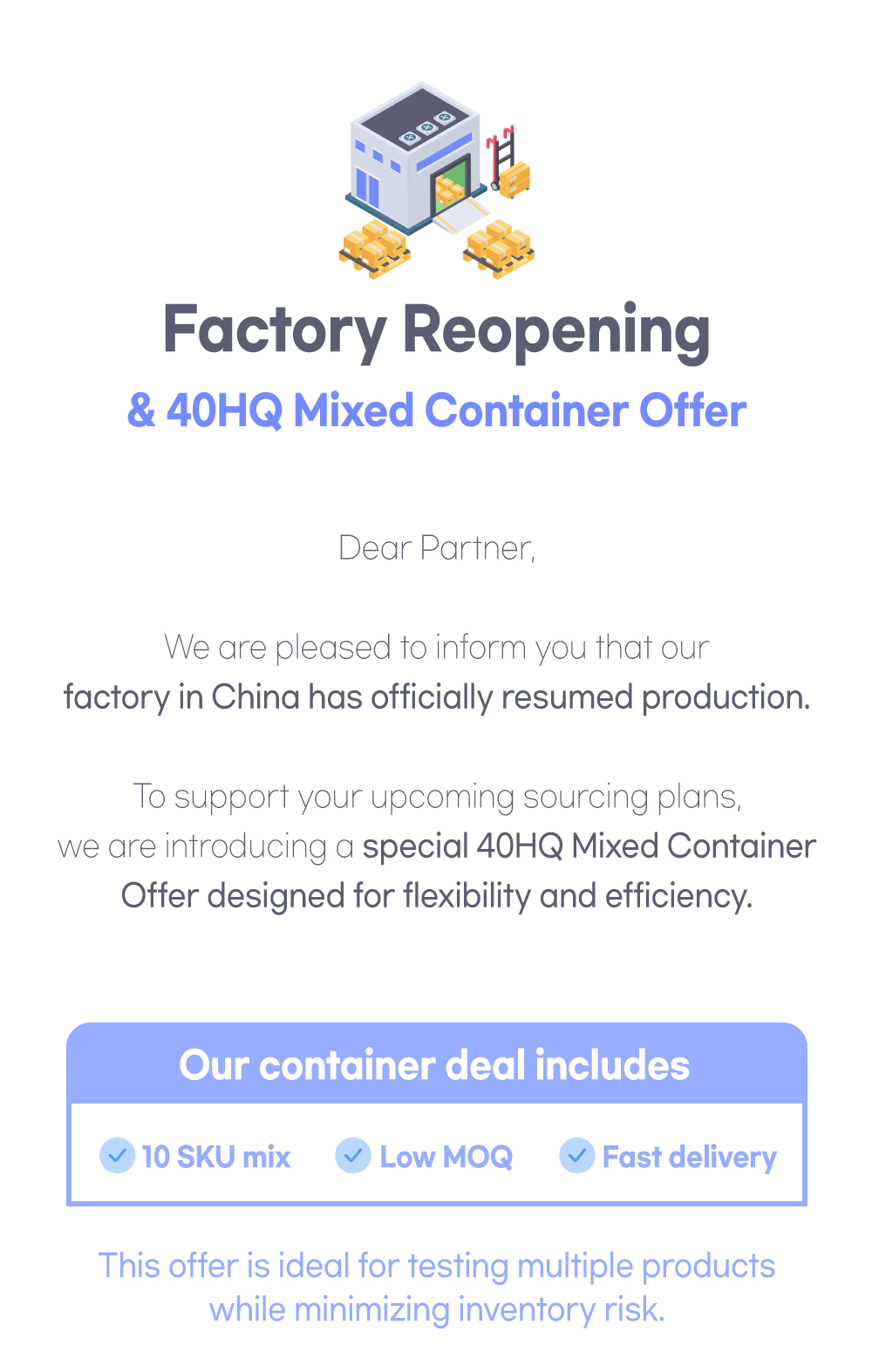 ๐ต๏ธ Looking for Low MOQ? Try Our 40HQ Container Deal